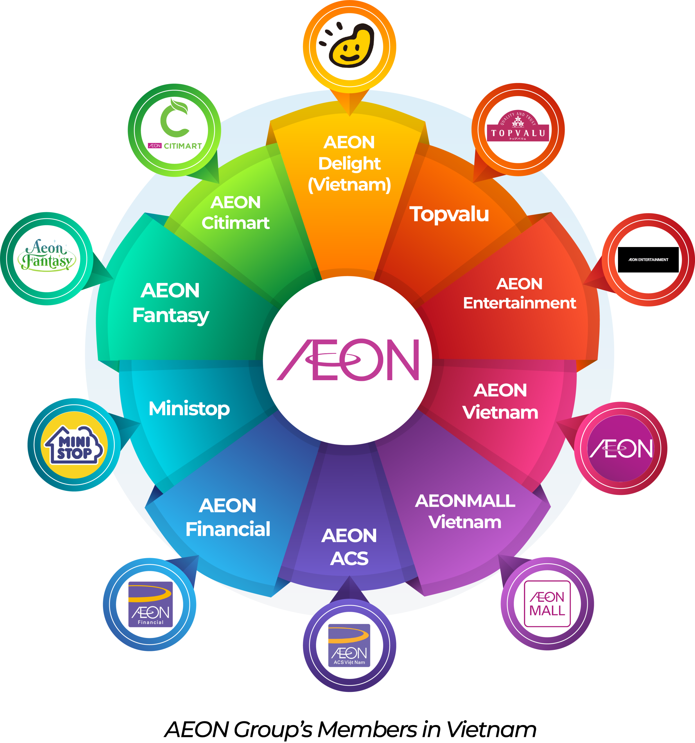 With the vision of becoming the leading organization in Asia in the field of Facility Management (FM), the group merged with Nichii Japan Kaihatsu Co., Ltd. (1976), AEON Techno Service (2006), and officially changed its name to AEON Delight Co., Ltd. in September 2006. Along with the establishment of subsidiaries in China, Malaysia, and Indonesia, AEON Delight Vietnam was founded on December 28, 2012, with the same mission to develop the AEON Delight brand across the Asian and Southeast Asian markets.